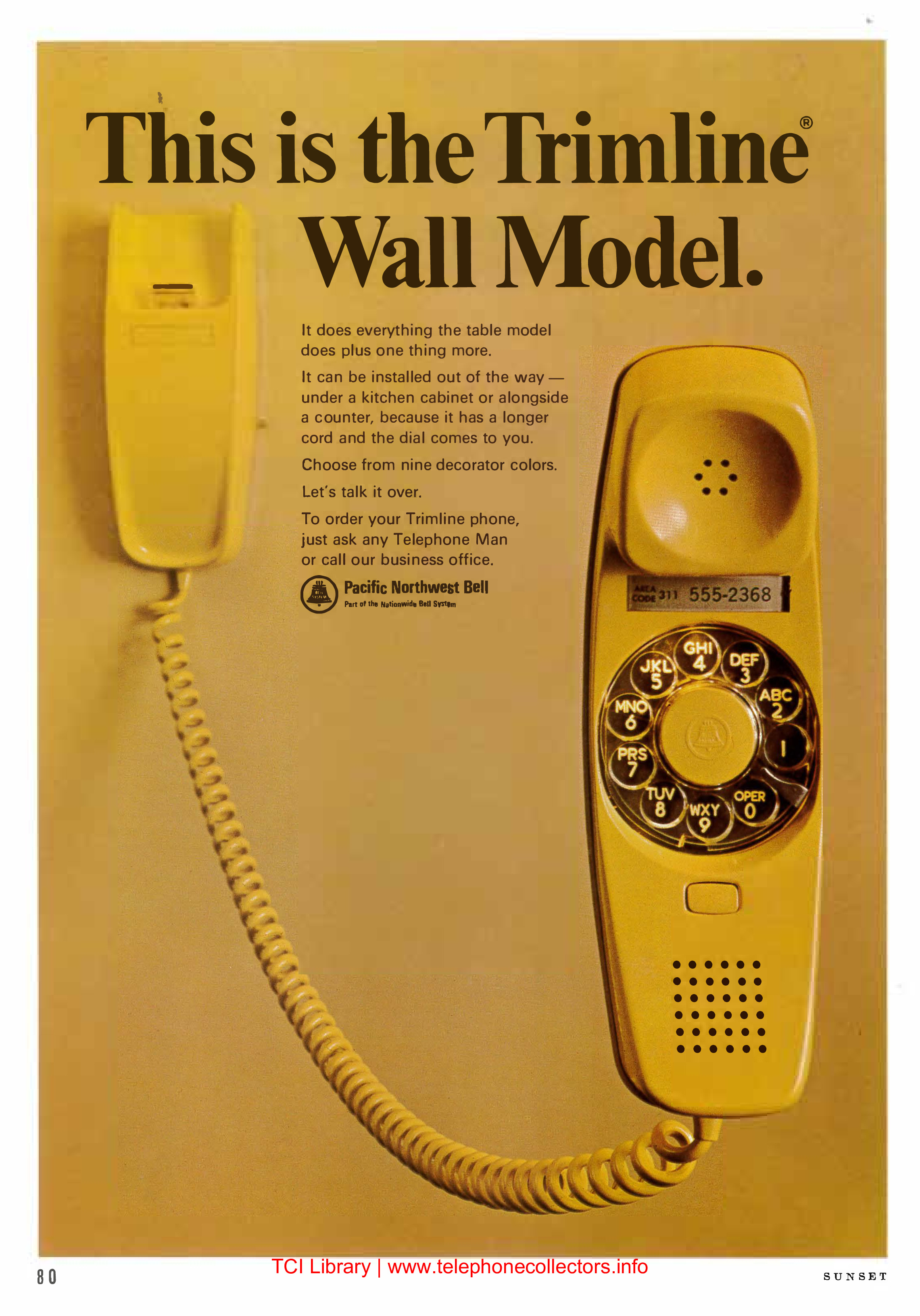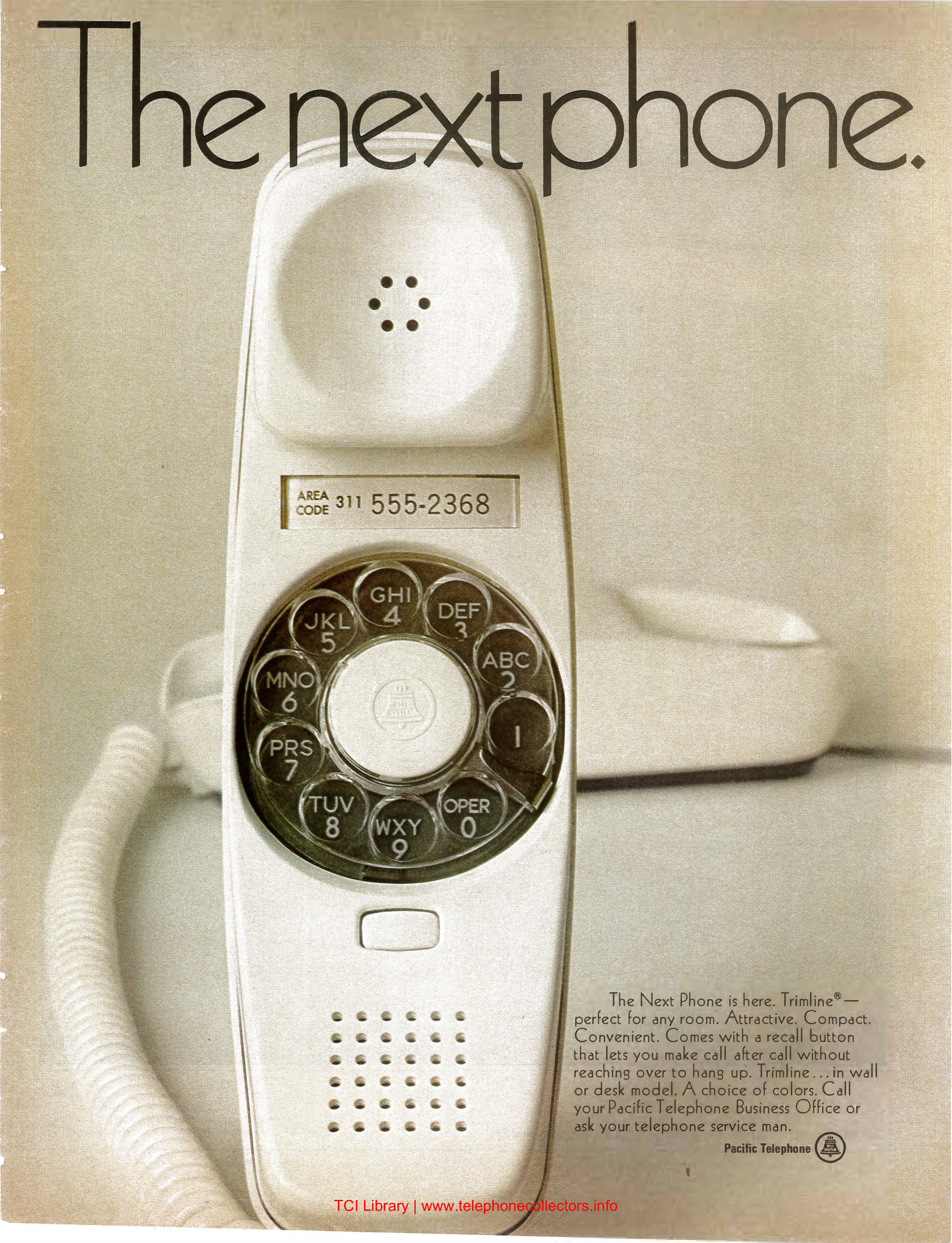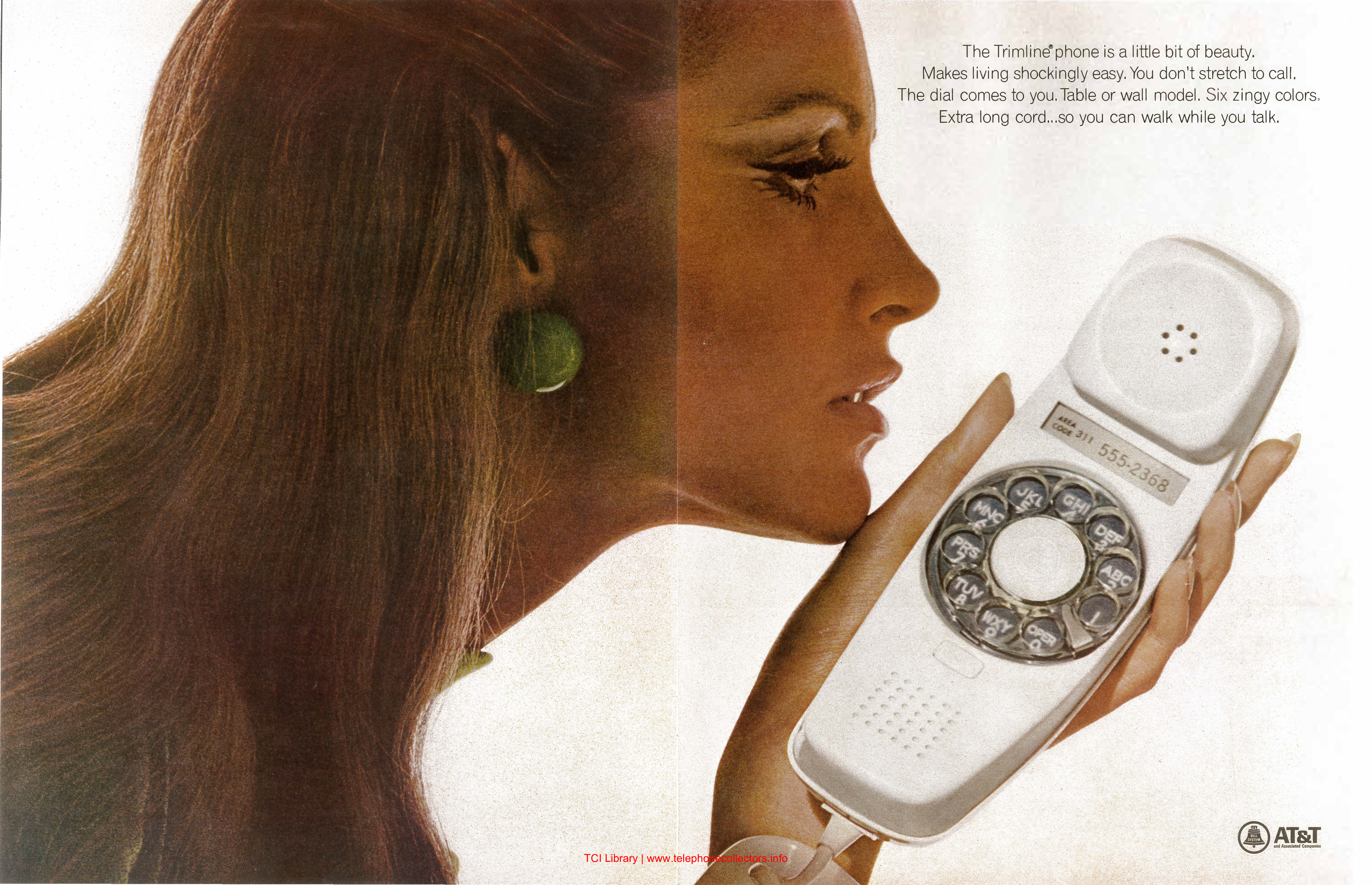 The Trimline, like the Princess phone, was one of the Bell System's best marketing innovations. First introduced in 1965, the idea was to create a stylish, easier to use telephone. A huge success, the Trimline was copied by most other major telephone manufacturers. The Trimline's dial was located in the handset itself with the ringer and electronics inside the telephone's base. The base was made in two variations: one for a desk set and the other for wall mounting.