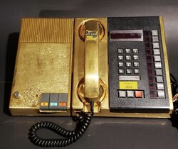 This 1981 Gold Plated Northern Telecom SL1 Phone came out of the Corporate Relations Office at 33 City Center Drive, Mississauga, Ontario.