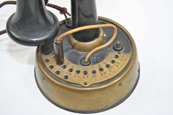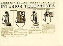 Extremely rare Ackerman-Boland No. 172 desk telephone plug system. 'Non-interfering, inter-communicating, 12 station portable desk telephone.' Please see the scan of an original 1901 Ackerman-Boland catalog showing the plug system desk top telephone. 'It is self contained; has the latest improved adjustable transmitter and long distance receiver; special automatic hook; no contacts in upright which is solid cast brass; heavily nickeled, and made without joints of any kind.' It goes on to say, 'The Company has for some years devoted itself zealously to the study, development and manufacture of interior telephones ranging in capacity from 2 - 25 stations.'