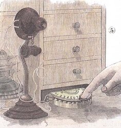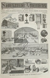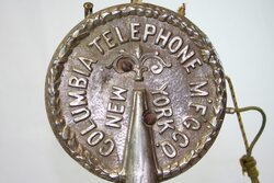 This Columbia Telephone is exceptional in every way. It was designed and manufactured to compete with and exceed the beauty and functionality of the Bell Telephone. Columbia had one goal in mind when they launched their telephone company in 1894 and introduced this very first upright telephone to America. Beat Bell Telephone. Every detail is unique. The transmitter, the receiver, the curved fluted shaft and the beautiful round turned walnut base make this unlike any other upright ever made. Look at the ornate lettering on the back of the transmitter and the intricate detail on the face of the transmitter. The receiver rests on a unique hook (obviously to get around the Bell switch hook patent that was expiring in 1894). And the curved fluted shaft is a masterful, early example of form and function. Columbia Telephones were manufactured under the patents of James W. McDonough and H. H. Eldred. At the time of issue, McDonough's patents were assigned to Logan C. Murray of New York, President of The United States National Bank & President of The American Banker's Association. Interestingly enough, Eldred's patents were assigned to the Western Electric Company at the time of issue. Columbia's telephones were introduced as an a alternative to paying a never ending, constantly increasing, rental fee from the Bell Telephone Company. It offered a telephone system for outright purchase which would accommodate up to 30 stations in a small to medium business. The entire Columbia Telephone Company was assembled and manufactured by the company in its New York factory. Telephone advertisements began to appear during the year of 1894 for the company. James W. McDonough of Chicago, Illinois had the little-known distinction of being the only inventor to de-throne Alexander Bell as the original inventor of the telephone. McDonough was a well-to-do furniture manufacturer of whose hobby, since 1867, had been experimenting with electrically produced sound. His "sound reproducer" was nothing more than an electromagnet positioned close to an iron disc attached to a flexible membrane. It differed little from the electro-magnetic receivers used by many of the early experimenters. Not content with just producing sound electrically, for years he had pondered the possibility of sending the human voice over a telegraph wire. By 1875 he had created a device that he claimed would do just that. He called it the Teleloge, and on April 10, 1876 applied for a patent. But unlike Alexander Bell, who could get patents issued in just two or three weeks, McDonough's application would be mired down in Patent Office hearings, interference actions and general red tape for over eight years. The main problem with McDonough's application was not the receiver, but his transmitter. Although physically different from Reis' transmitter, in principle it was virtually identical. And if that wasn't enough, McDonough made the same mistake Reis did when he referred to it as a "circuit breaker," an instrument that would make and break the circuit - or so he thought. Like Reis, McDonough had not yet heard of the microphone mode. And also like Reis, McDonough's make and break explanation would prove just as fatal. McDonough's patent application eventually became embroiled in interference actions with other telephone inventors, including Bell and Elisha Gray. An interference occurs when two or more inventors lay claim to essentially the same invention. When this happened, the matter was turned over to the Examiner of Interferences, whose task it was to determine, with hearings and testimony, who first conceived the invention. In the United States, in interference actions, the patent goes to the inventor who can prove priority of conception, not necessarily to the one who was first to file. Although McDonough's transmitter was deemed non-functional for the same reason as was Reis', despite testimony to the contrary, the receiver portion of his application was declared to have been conceived prior to that in Bell's famous patent. In essence, McDonough was now the original inventor of the telephone. This was not only a blow to Bell's ego, but a serious threat to the Bell Telephone Company's patent-based monopoly. They immediately appealed this devastating decision to the examiners in chief, the next highest level of appeals, who eventually reversed the previous ruling. Retaliating, McDonough took his case directly to the court of last resort, Commissioner of Patents Benjamin Butterworth, hoping to have the previous ruling reinstated. But Butterworth sustained the decision of the examiners in chief, and the Bell Telephone Company breathed a sigh of relief. by A. Edward Evenson, Author of the book The Telephone Patent Conspiracy of 1876 The scans are from the front page of an original November 24, 1894, Scientific American magazine. The entire front page of this issue featured the Columbia Telephone Manufacturing Company and included pictures that showed this telephone. This desk set is the only one known to exist in a private collection.
