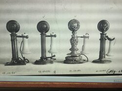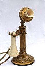 Almost all of Caldwell's custom pieces were photographed, cataloged and added to the company archive, which is now available online through the Smithsonian Library. It was here that a search through hundreds of pages of photographs turned up one page with four fantastic E. F. Caldwell candlestick telephone creations (see attached photos). Including this beautiful telephone. It has all of the Caldwell touches, including the intricate gilding, an ivory receiver and mouthpiece and the near perfect detail.