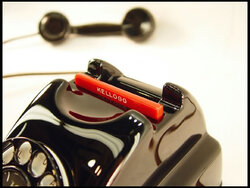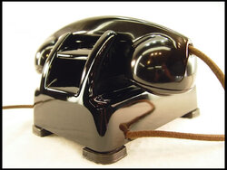 The 1000 is nicknamed 'the Redbar' for its bright red hook switch actuator plunger. Produced from 1947-1957, during the 50th anniversary year of this family-owned company. Similar in size and shape to Western Electric's 302, Stromberg Carlson's 1243, and Automatic Electric's 40.