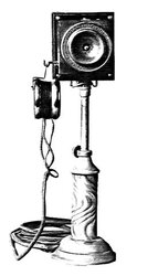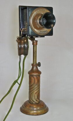 In 1892, one year before Bell's original patent expired, he introduced the first upright desk top telephone in America, available in two styles. Model No. 1 was a potbelly and No. 2 was a swirl base (see scan). This desk set is the earliest original Bell desk stand known to exist in a private collection. It is the American Bell No. 2 Speaking Tube Desk Telephone. It is equipped with a high resistance lettered White Solid Back 6 digit beveled edge transmitter code No. 225 and a code No. 129 unipolar low resistance receiver. The scan is taken from the earliest known catalog illustration of an upright desk telephone in the United States. Dated June 27, 1894 it shows the original three designs that Bell introduced to the world, beginning in 1892. No. 1 and No. 2 supported a speaking tube transmitter. The earliest telephones were heavy wooden wall telephones, and since Bell's fundamental patents for the telephone were expiring in 1893 and 1894, opening the door to competition, Bell was motivated to keep a competitive edge by introducing newer, better telephones. The upright desk top telephone was introduced for the first time with these Bell speaking tubes in 1892. By 1894, all of the serious competitors were building candlesticks to compete and were rolling them out as Bell's second patent expired.