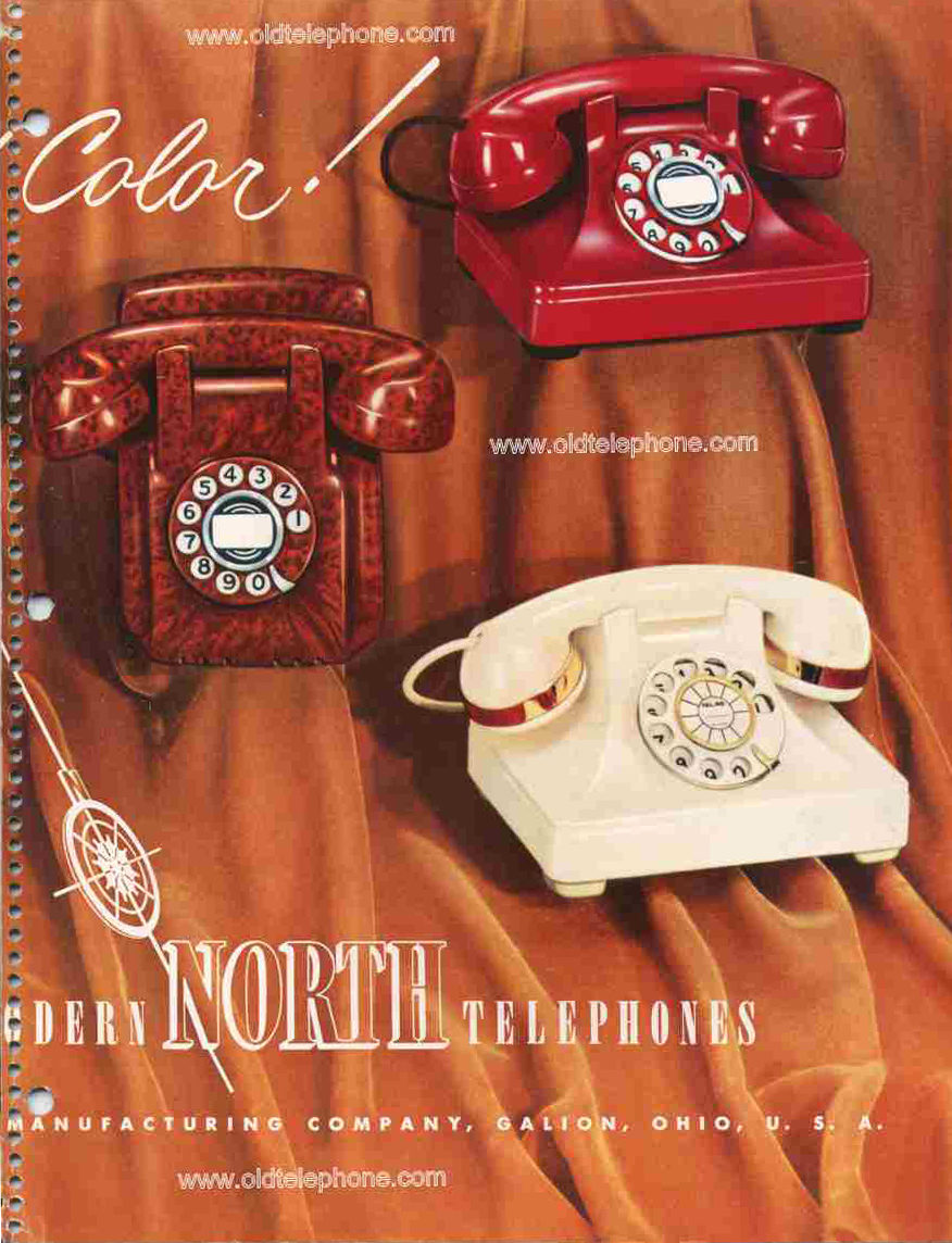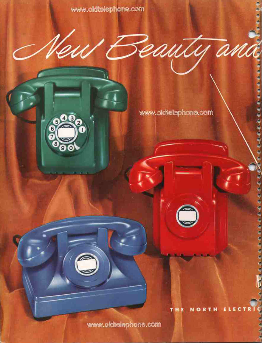North Electric's signature bakelite desk set. Early sets had metal housing and later ones had bakelite. Produced in several colors, and also extension and wall versions - see brochure images below.