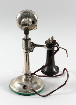 This classic WE candlestick is a tapered shaft (aka 'oilcan') model. Produced for American Bell. With OST (Outside Terminal) receiver.