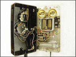The wall companion to the WE 302. Plastic body, bakelite handset.